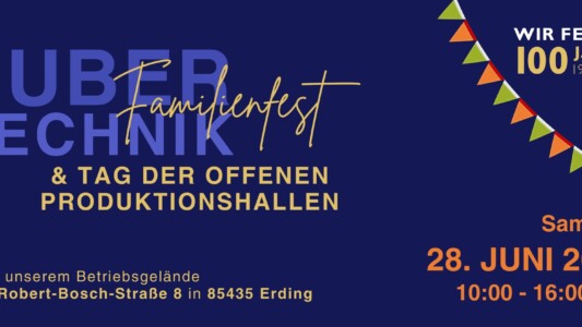 Wir feiern 100 Jahre Huber Technik mit einem großen Familienfest in Erding.